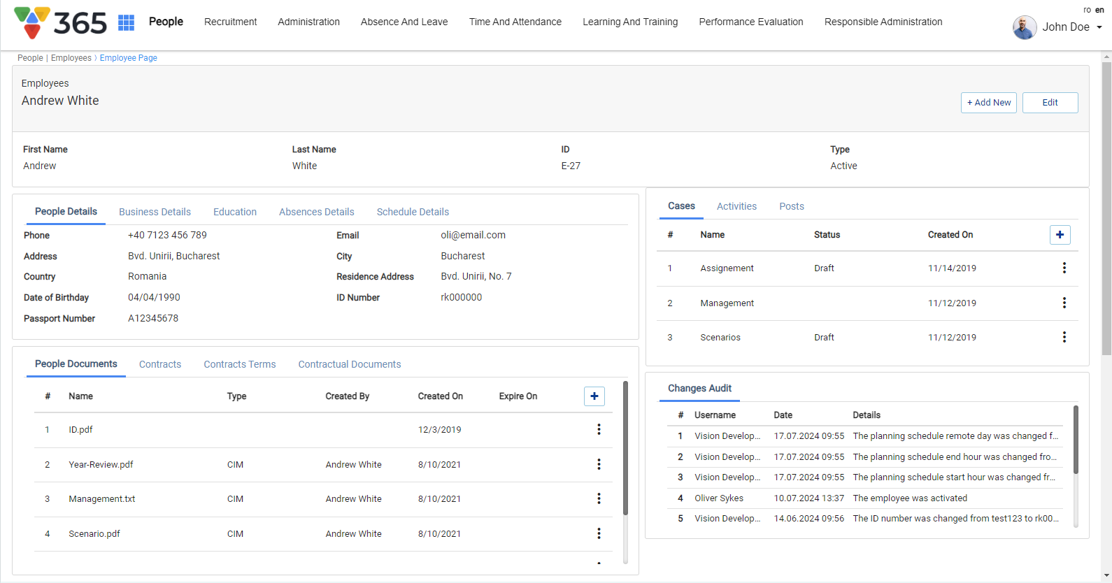 Administrate the standard information according with Labor Management. Alerts, Notifications and AI suggestions will decrease the HR staff effort for administrative tasks allowing them to focus on developing team members.