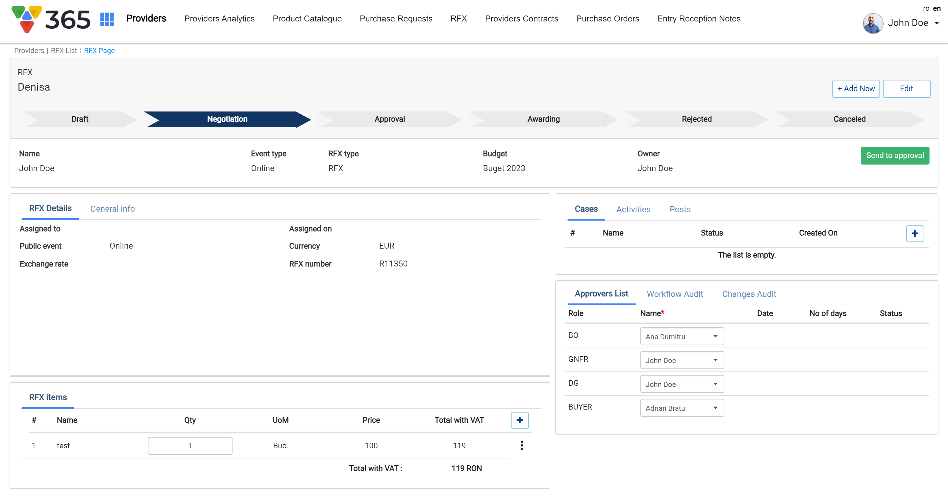 Streamlines the procurement process by enabling businesses to source, compare, and negotiate with suppliers through a centralized digital platform. Vision 365 eSourcing offers flexible tools for creating and managing RFQs, RFPs, and auctions, ensuring transparency and efficiency in supplier selection.
